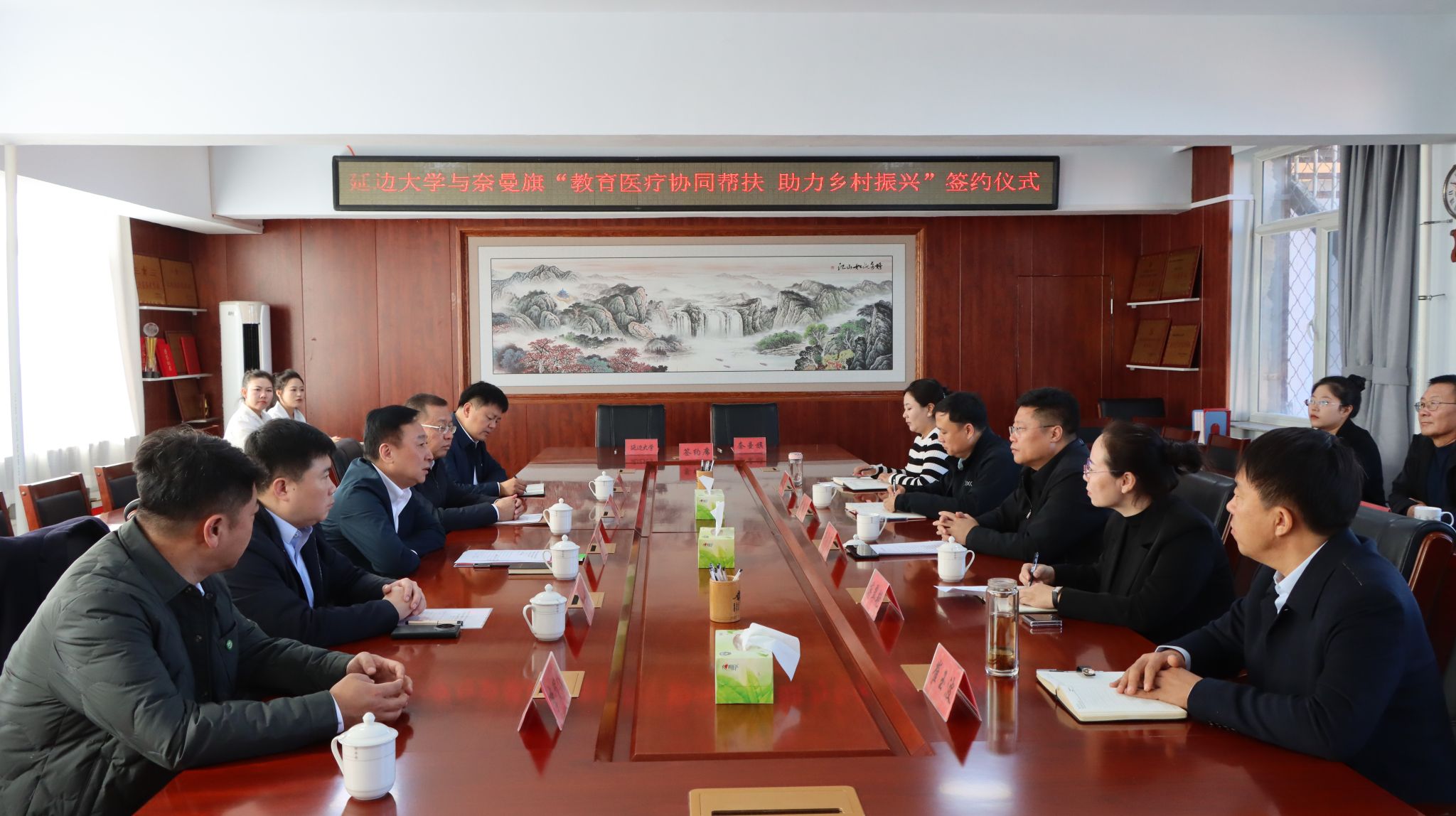 10月23日,在内蒙古奈曼旗八仙筒镇政府会议室,相隔千里的吉林延边大学与内蒙古自治区通辽市奈曼旗人民政府“教育医疗协同帮扶、助力乡村振兴”合作协议签约仪式正在进行,虽然两地地域与民族特色各异,但在铸牢中华民族共同体意识的主线引领下,双方在推进乡村振兴战略的实践行动中愿景目标高度一致。